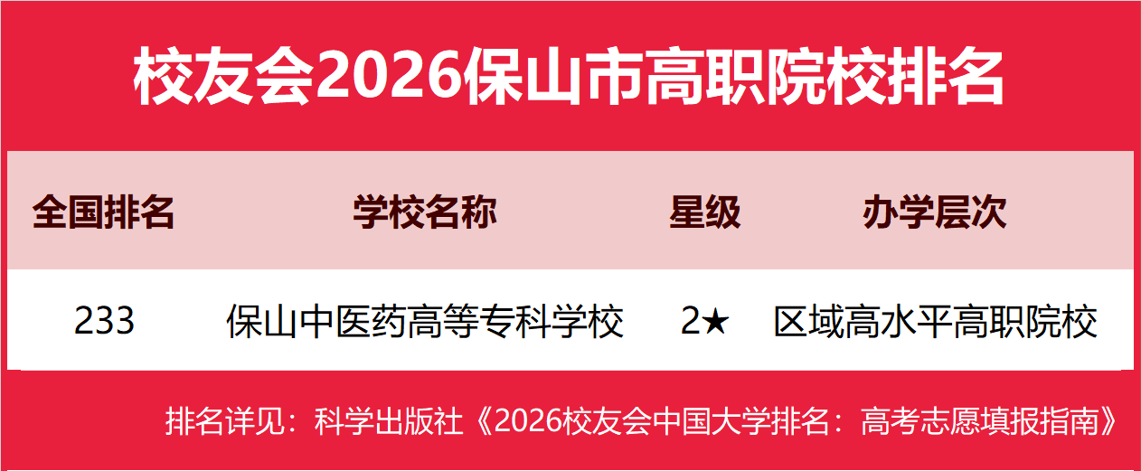 | 校友会2026保山市大学排名,保山学院、保山中医药高等专科学校第一 | |||