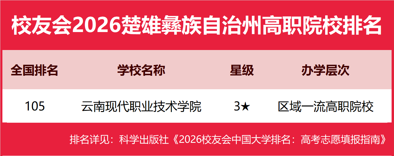 | 校友会2026楚雄彝族自治州大学排名,楚雄师范学院、云南现代职业技术学院第一 | |||