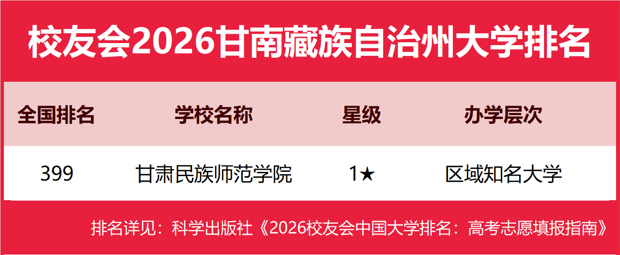 | 校友会2026甘南藏族自治州大学排名,甘肃民族师范学院第一 | |||