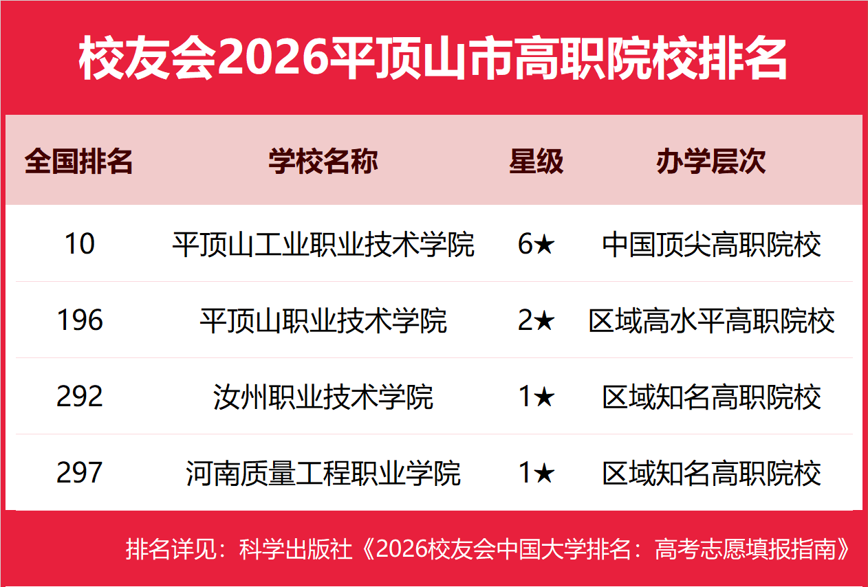 | 校友会2026平顶山市大学排名,平顶山学院、平顶山工业职业技术学院第一 | |||