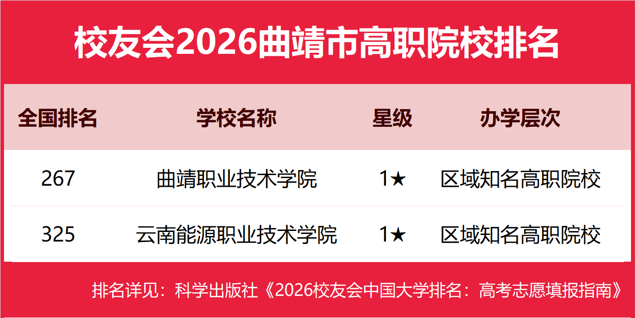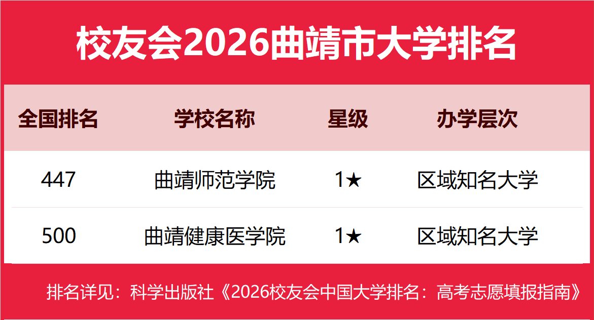 | 校友会2026曲靖市大学排名,曲靖师范学院、曲靖职业技术学院第一 | |||