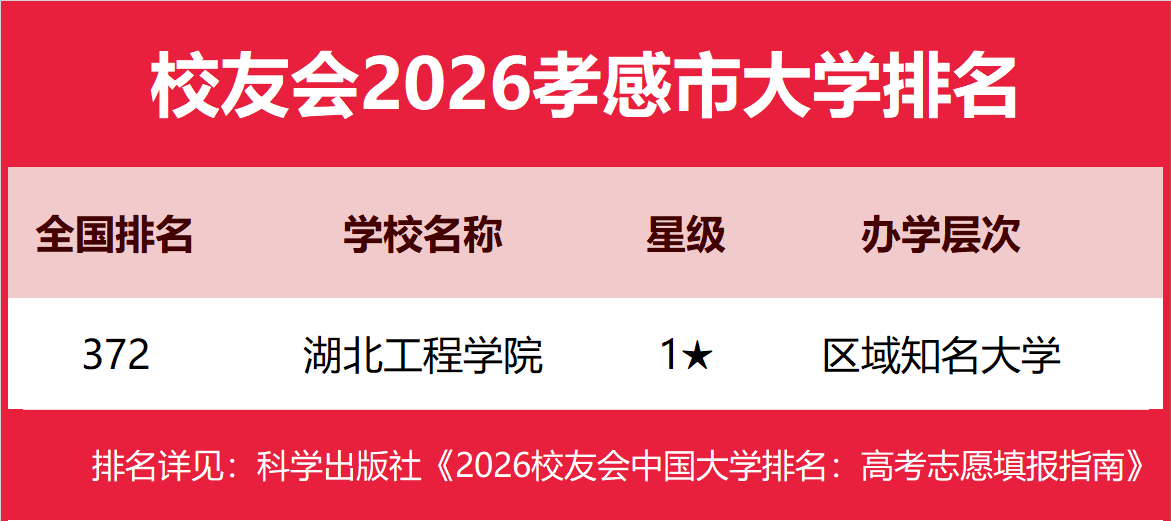 | 校友会2026孝感市大学排名,湖北工程学院、湖北工程学院新技术学院、湖北职业技术学院第一 | |||