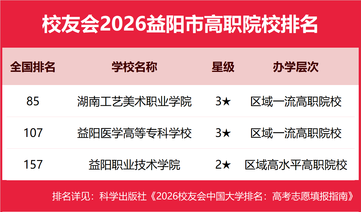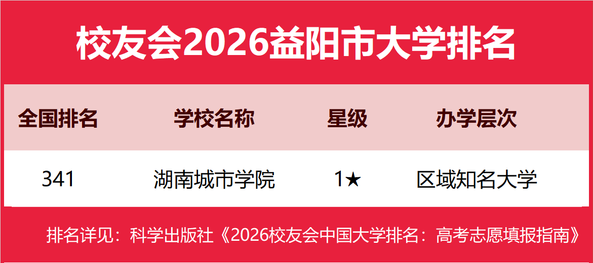 | 校友会2026益阳市大学排名,湖南城市学院、湖南工艺美术职业学院第一 | |||