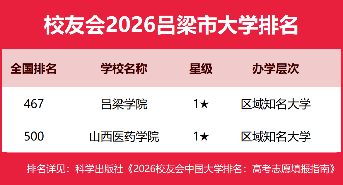 | 校友会2026吕梁市大学排名,吕梁学院第一 | |||