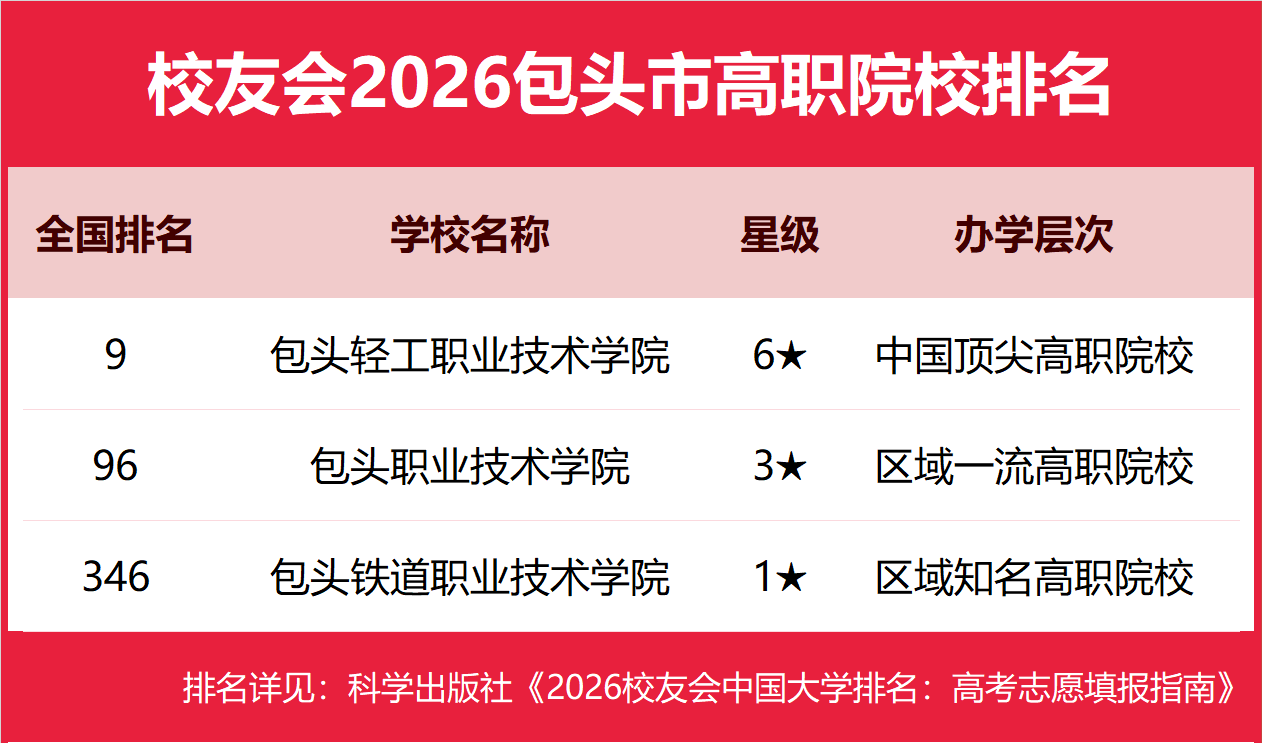 | 校友会2026包头市大学排名,内蒙古科技大学、包头轻工职业技术学院第一 | |||