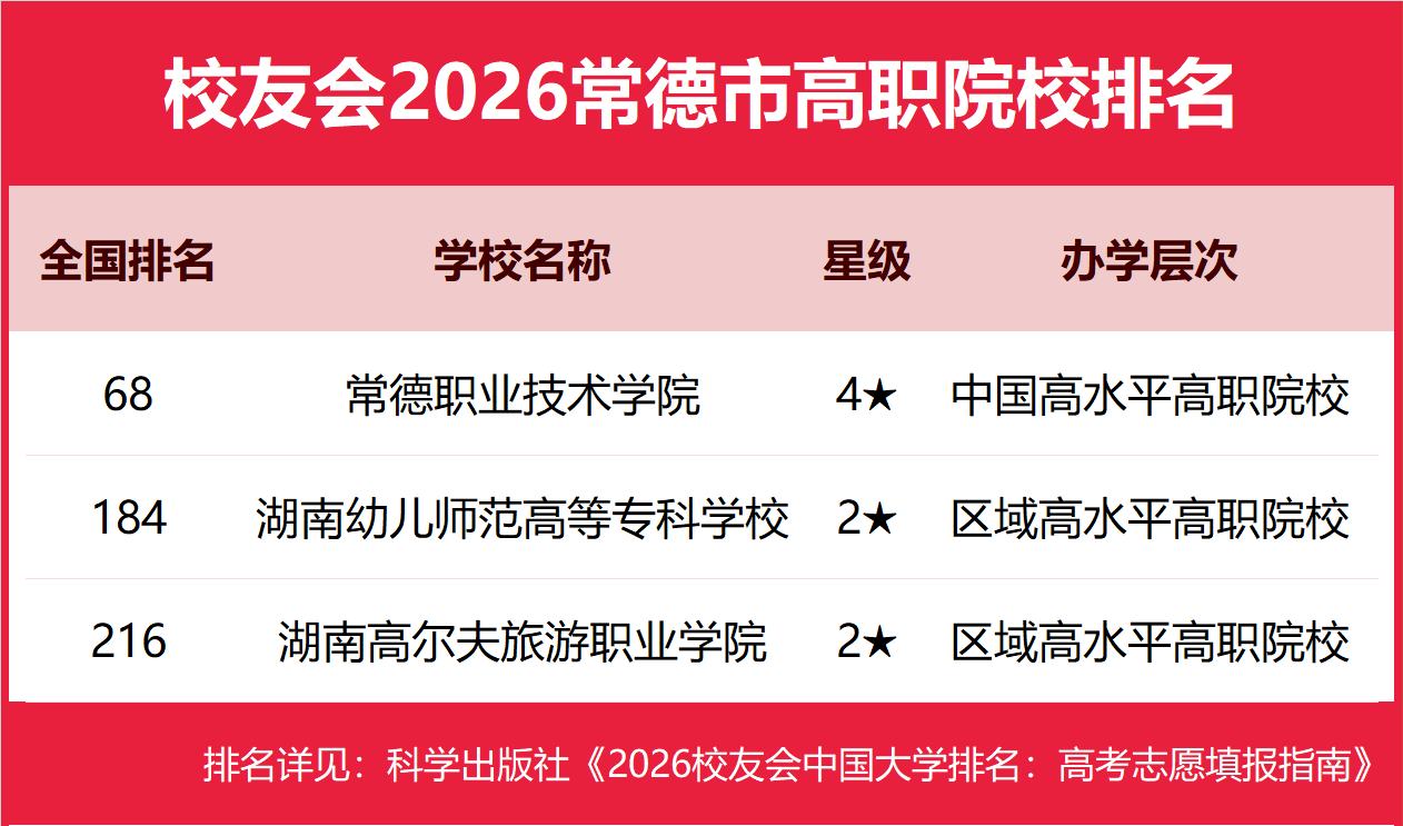 | 校友会2026常德市大学排名,湖南文理学院、常德学院、常德职业技术学院第一 | |||