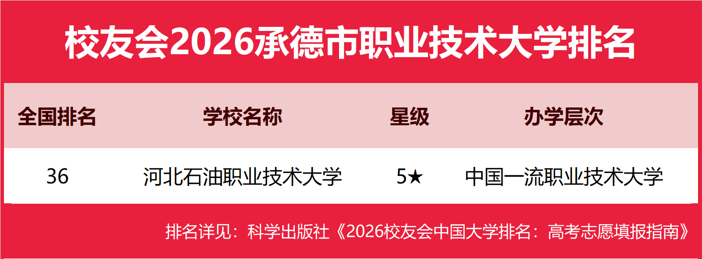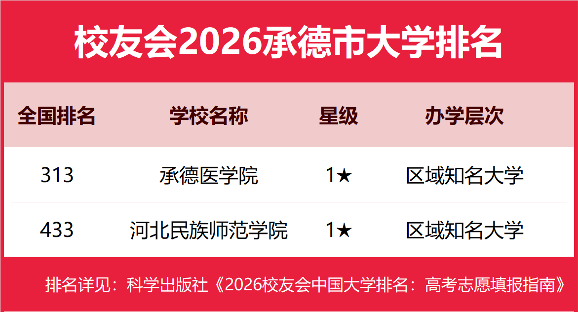 | 校友会2026承德市大学排名,承德医学院、河北石油职业技术大学、河北旅游职业学院第一 | |||