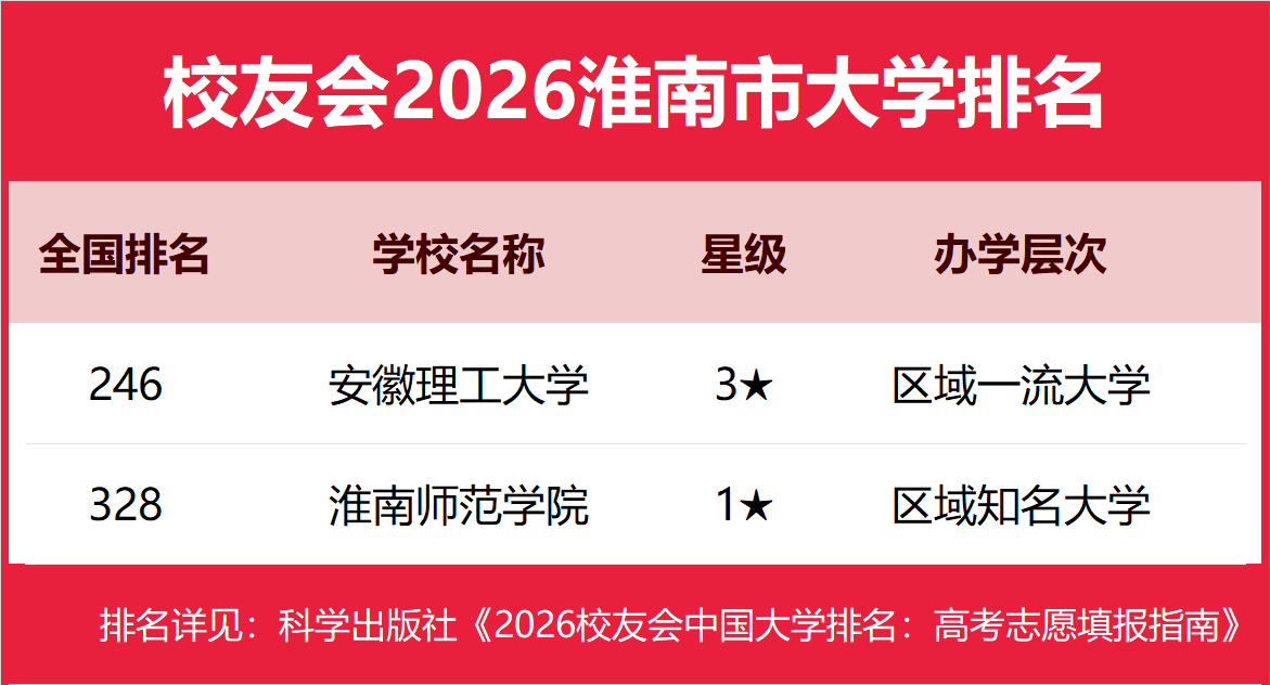| 校友会2026淮南市大学排名,安徽理工大学、淮南联合大学第一 | |||
