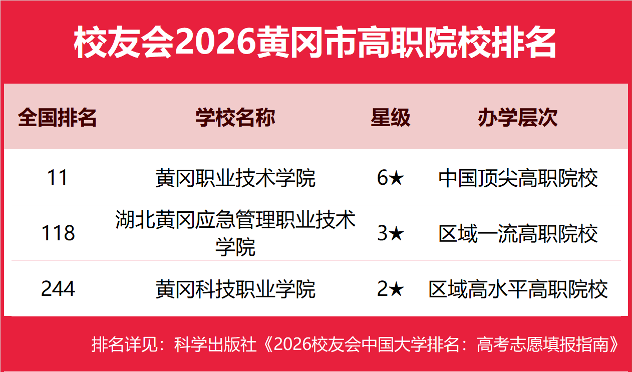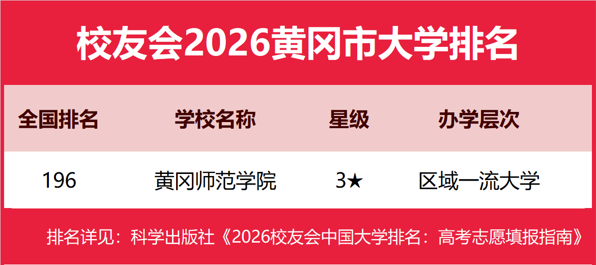 | 校友会2026黄冈市大学排名,黄冈师范学院、黄冈职业技术学院第一 | |||