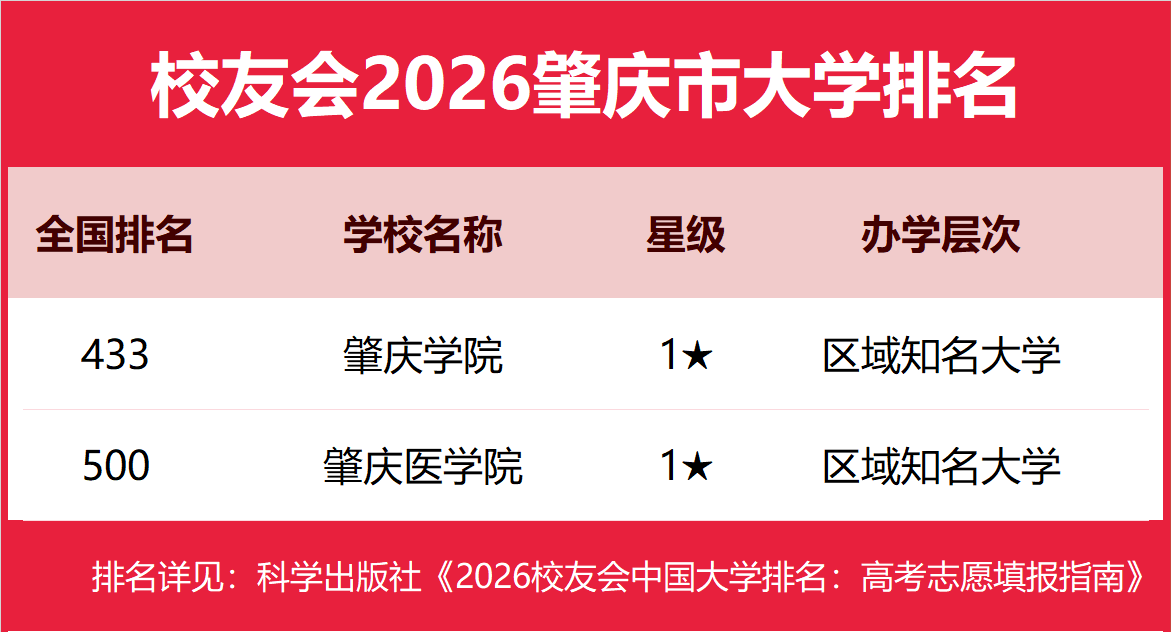 | 校友会2026肇庆市大学排名,肇庆学院、广东理工学院、广东工商职业技术大学第一 | |||