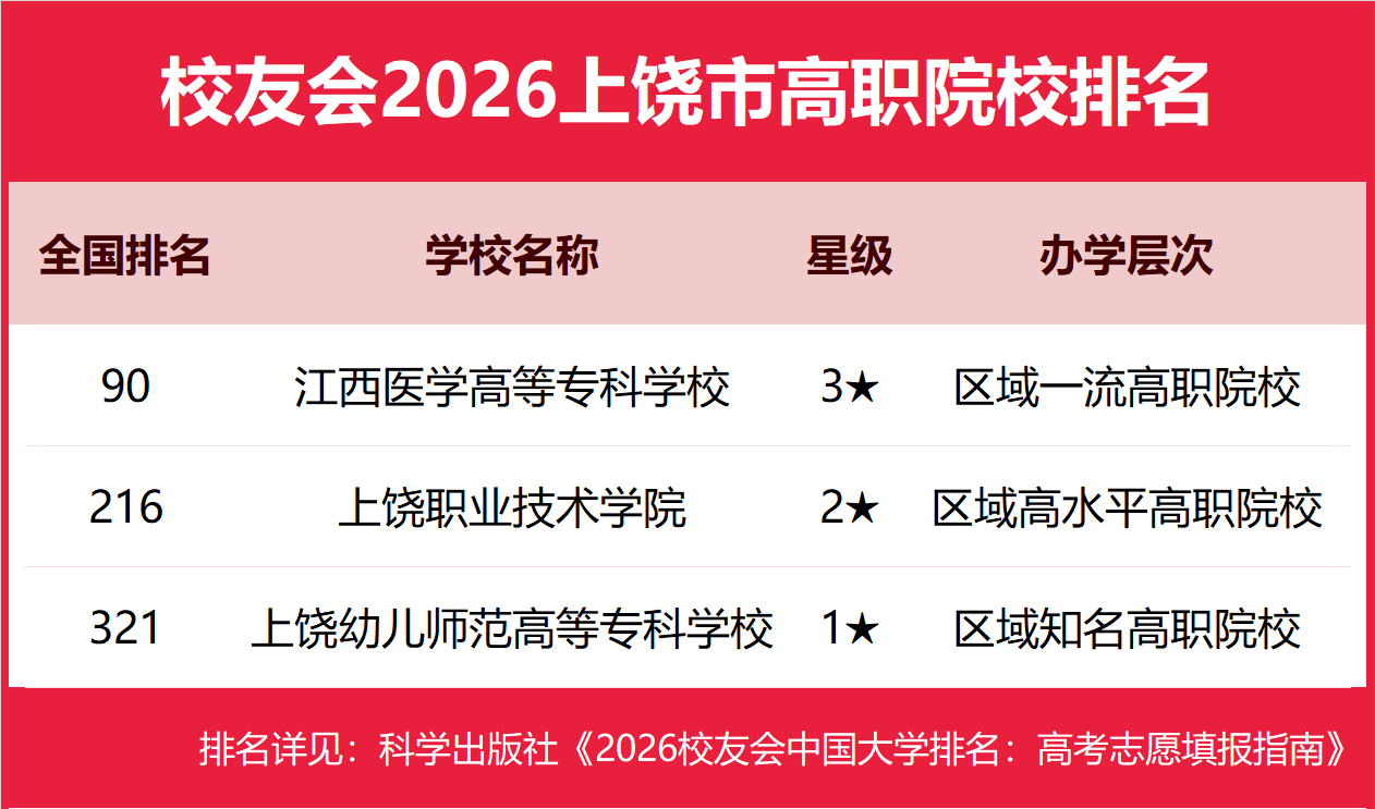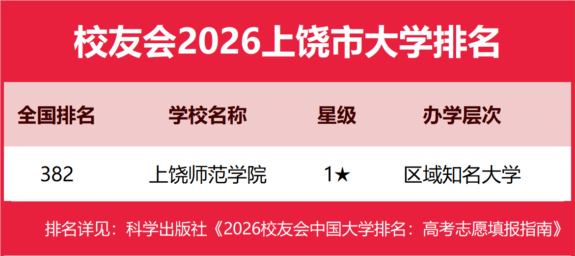 | 校友会2026上饶市大学排名,上饶师范学院、江西医学高等专科学校第一 | |||