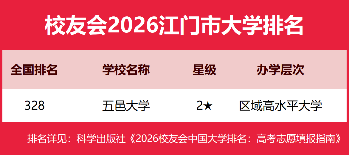 | 校友会2026江门市大学排名,五邑大学、江门职业技术学院第一 | |||