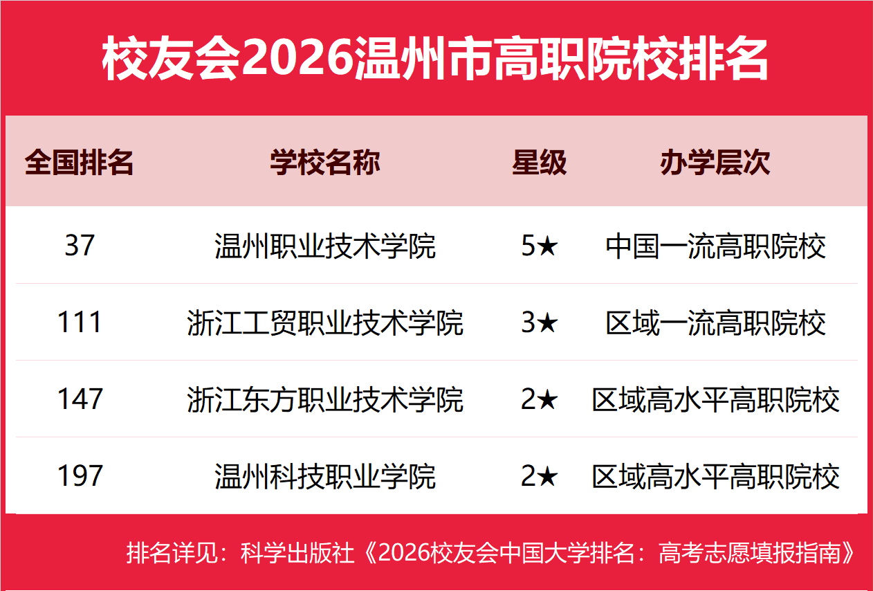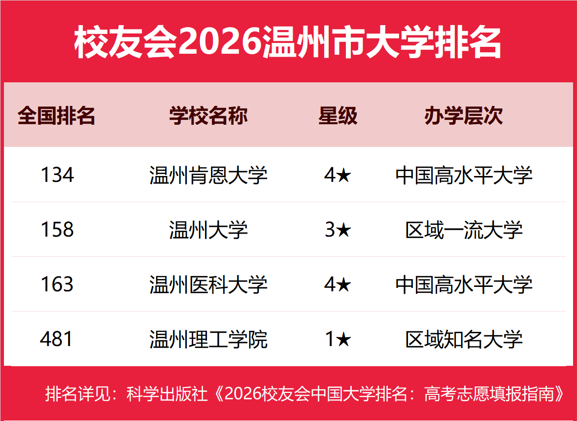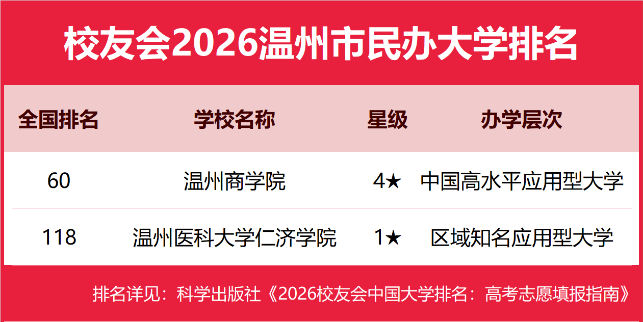 | 校友会2026温州市大学排名,温州肯恩大学、温州商学院、温州职业技术学院第一 | |||