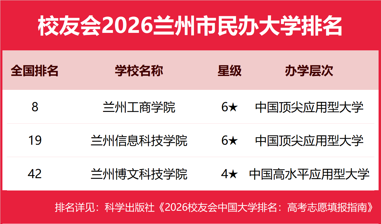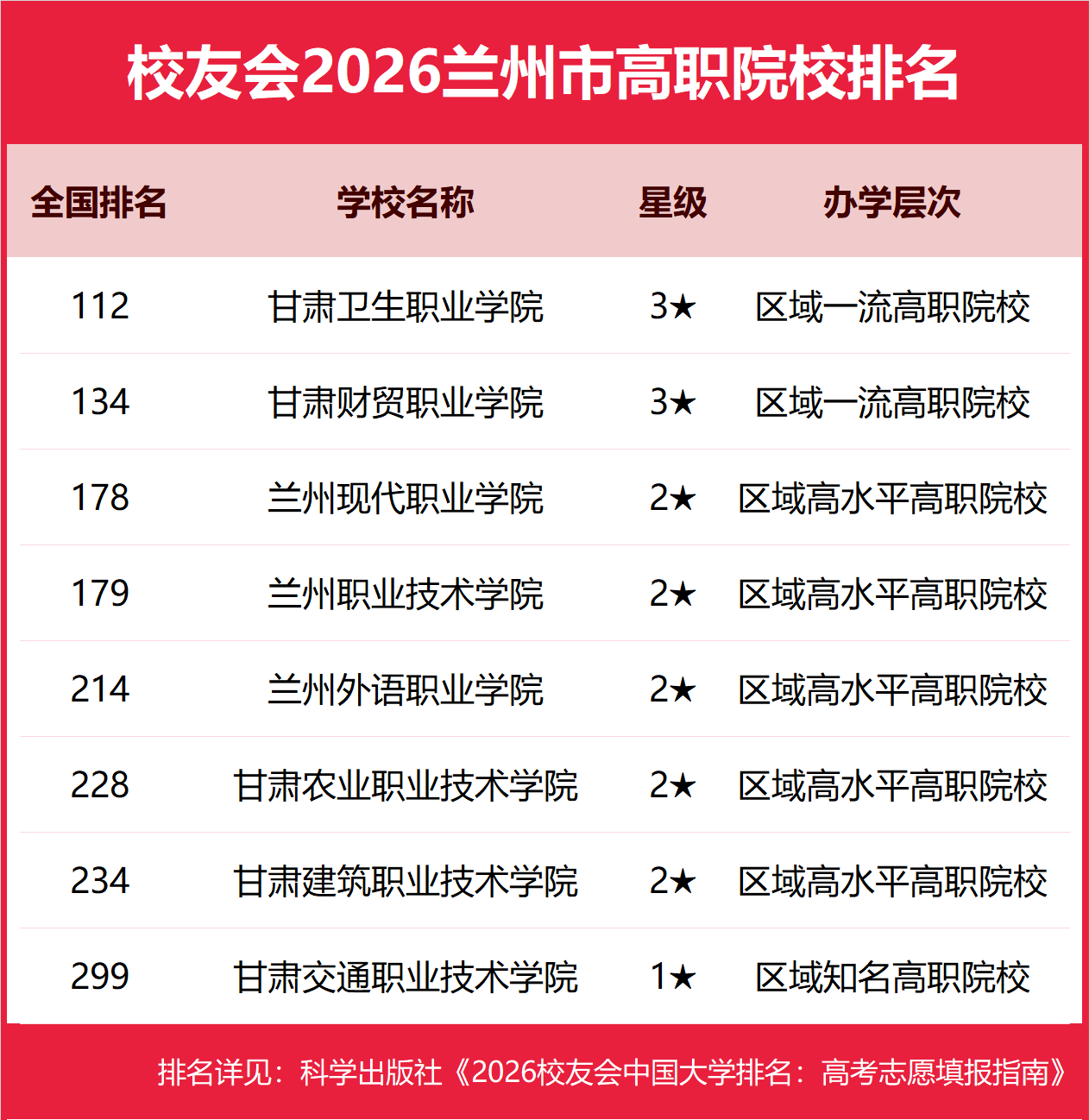 | 校友会2026兰州市大学排名,兰州大学、兰州工商学院、兰州资源环境职业技术大学、甘肃卫生职业学院第一 | |||