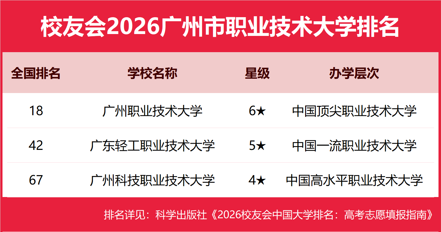 校友会2026广州市职业技术大学排名,广州职业技术大学第一,广州科技职业技术大学前三