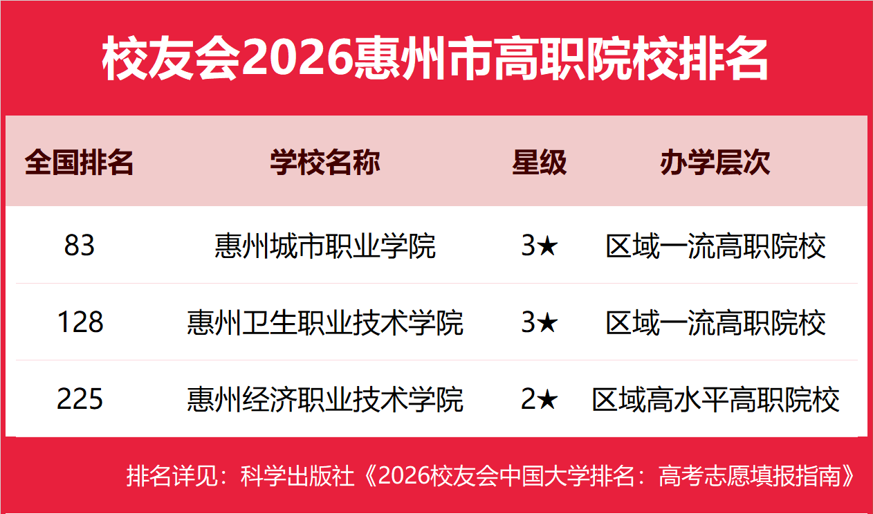 | 校友会2026惠州市大学排名,惠州学院、惠州城市职业学院第一 | |||