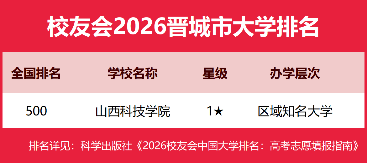 | 校友会2026晋城市大学排名,山西科技学院、晋城职业技术学院第一 | |||