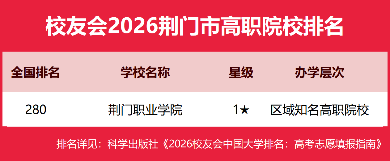 | 校友会2026荆门市大学排名,荆楚理工学院、荆门职业学院第一 | |||