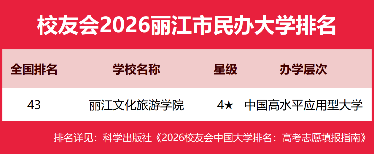 | 校友会2026丽江市大学排名,丽江师范学院、丽江文化旅游学院第一 | |||