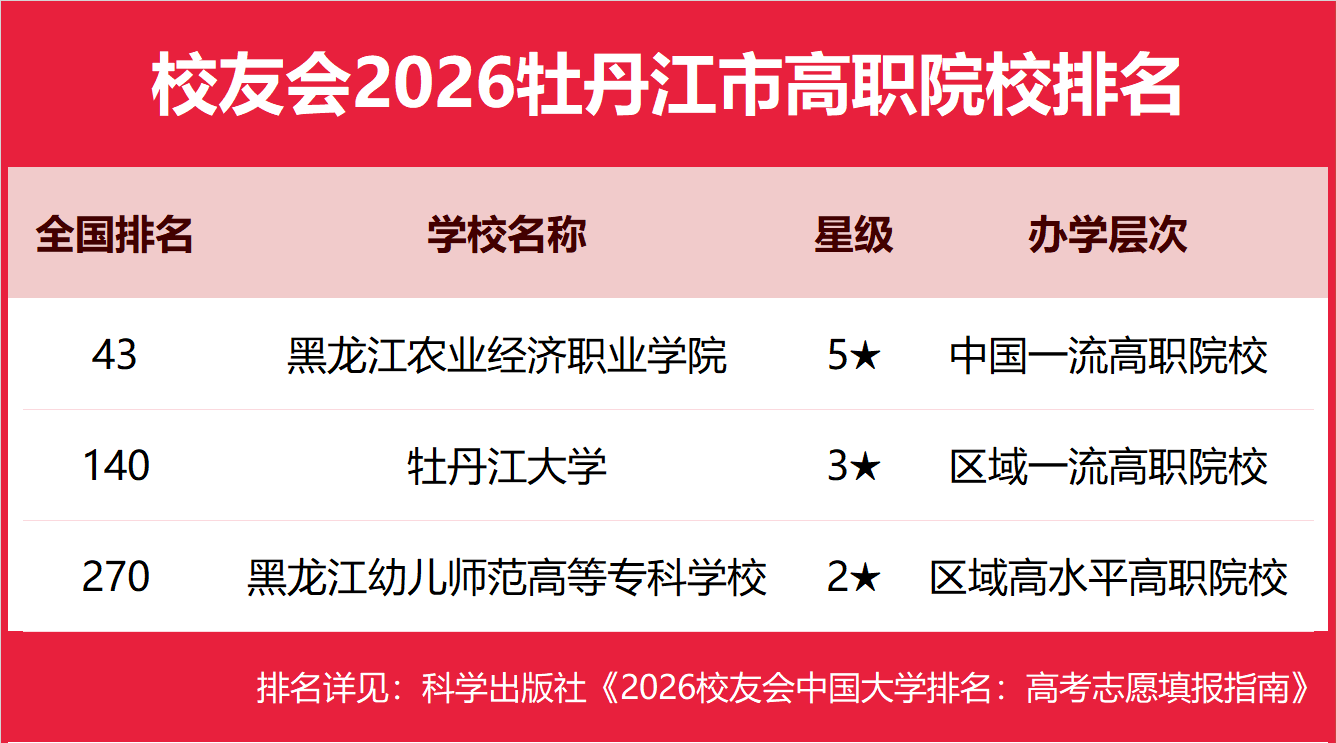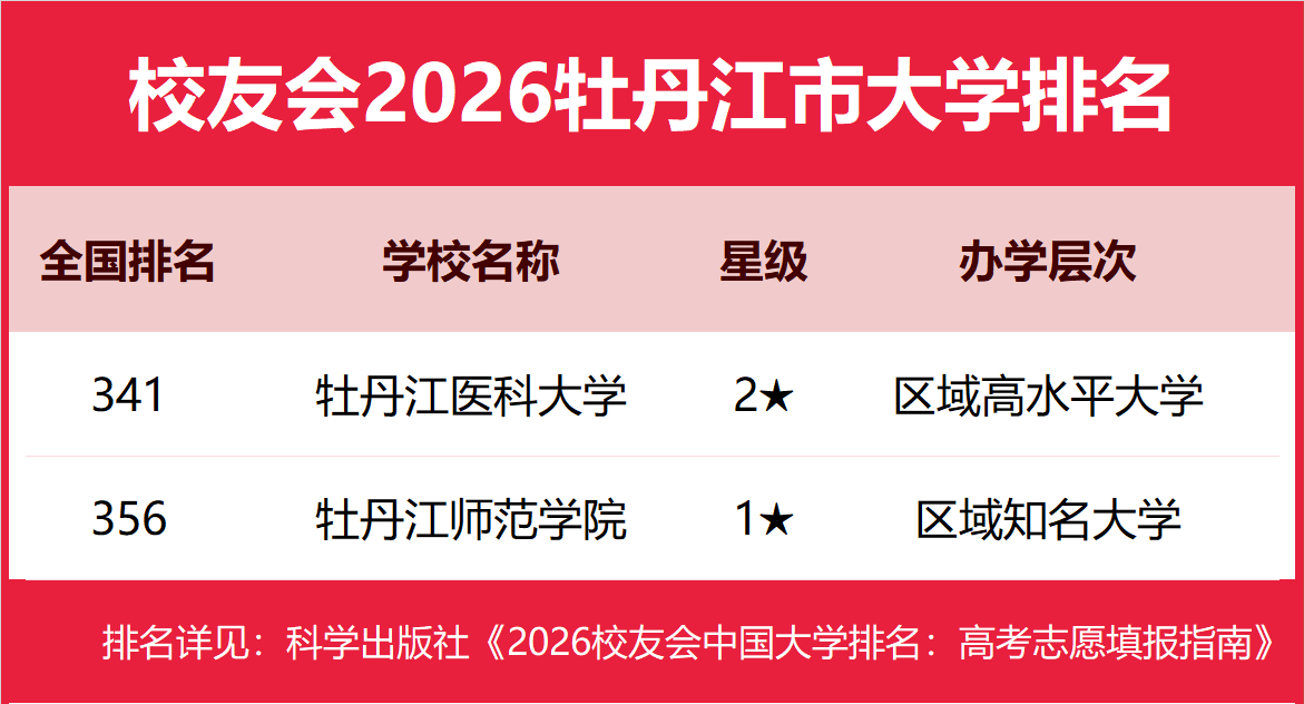 | 校友会2026牡丹江市大学排名,牡丹江医科大学、黑龙江农业经济职业学院第一 | |||