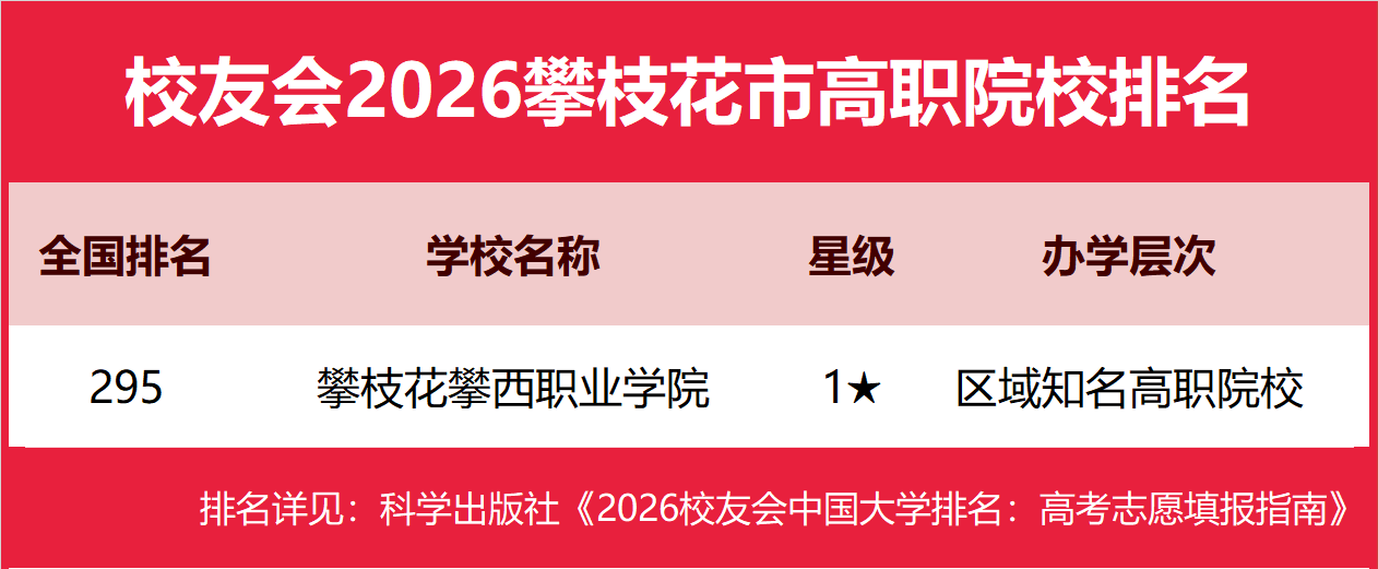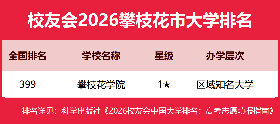 | 校友会2026攀枝花市大学排名,攀枝花学院、攀枝花攀西职业学院第一 | |||