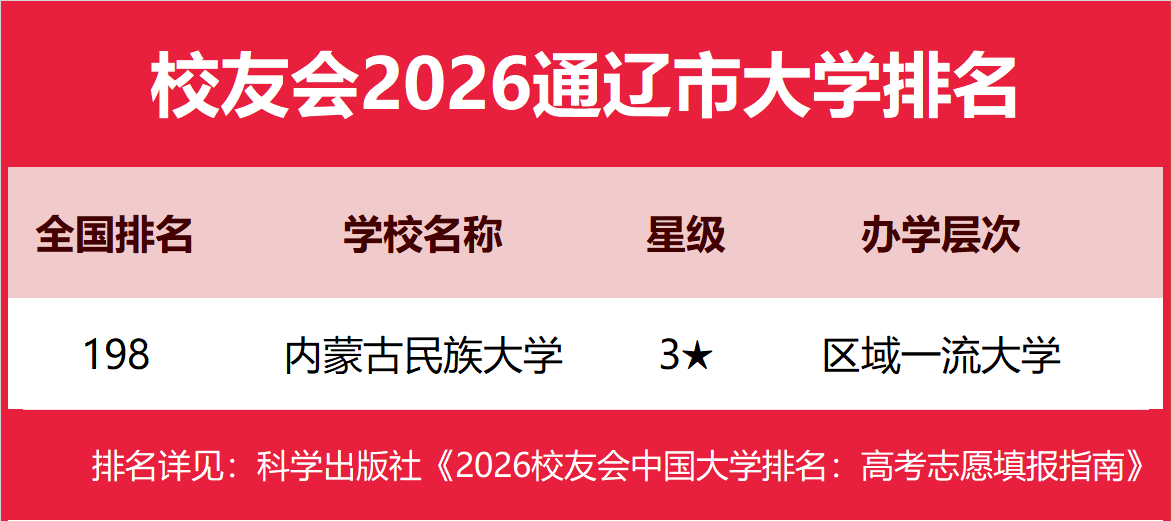 | 校友会2026通辽市大学排名,内蒙古民族大学、通辽职业学院第一 | |||