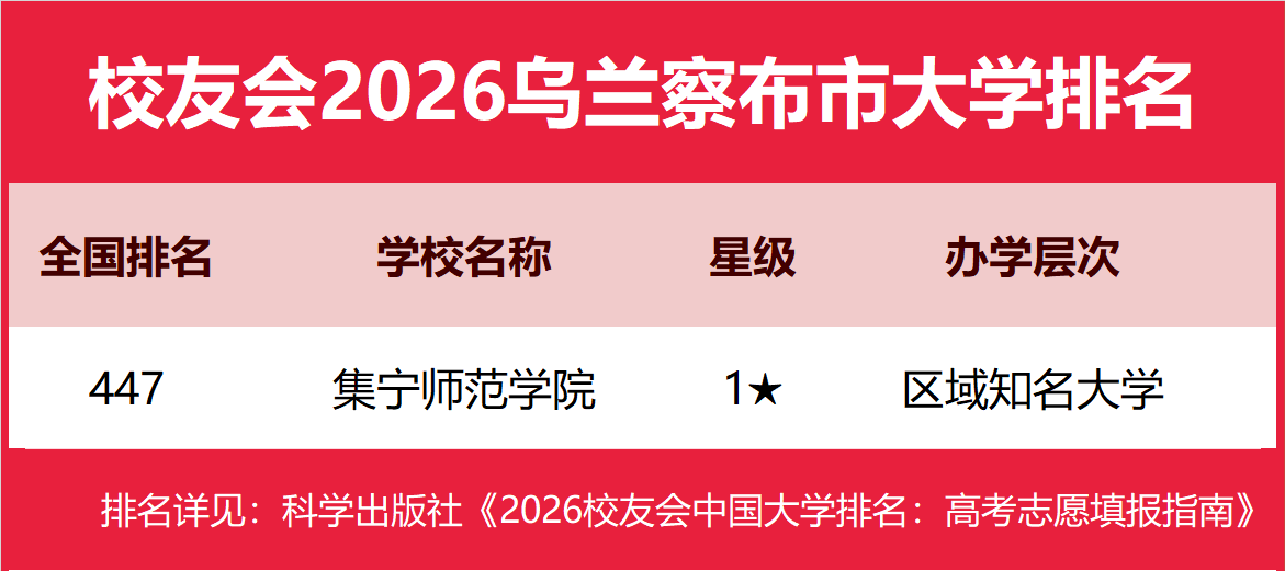 | 校友会2026乌兰察布市大学排名,集宁师范学院第一 | |||