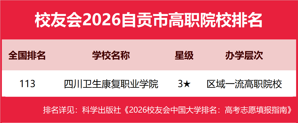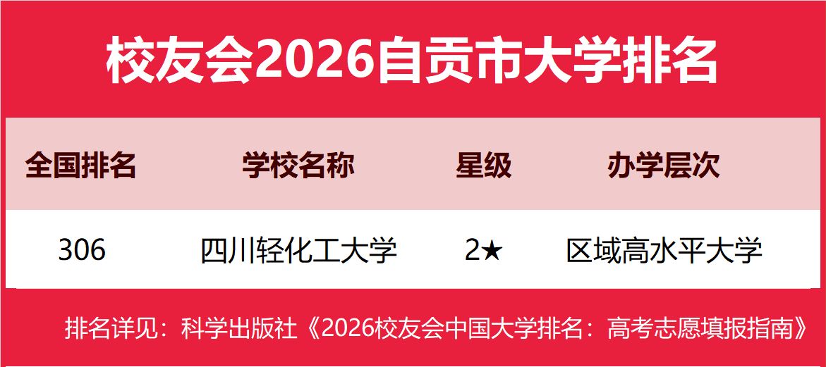 | 校友会2026自贡市大学排名,四川轻化工大学、四川卫生康复职业学院第一 | |||