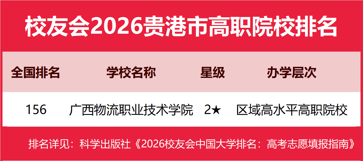 | 校友会2026贵港市大学排名,广西物流职业技术学院第一 | |||