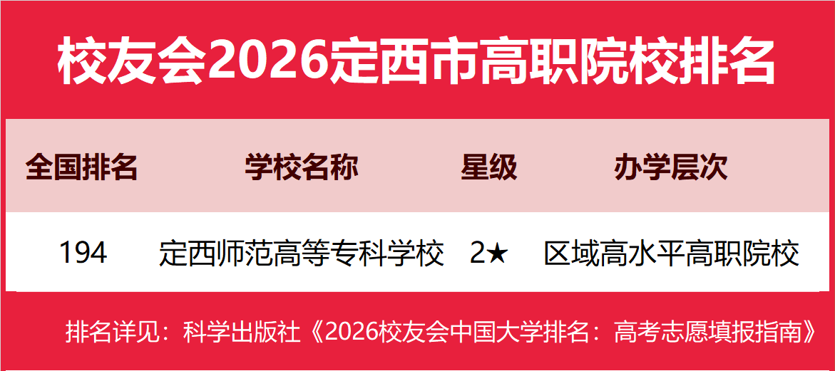 | 校友会2026定西市大学排名,定西师范高等专科学校第一 | |||