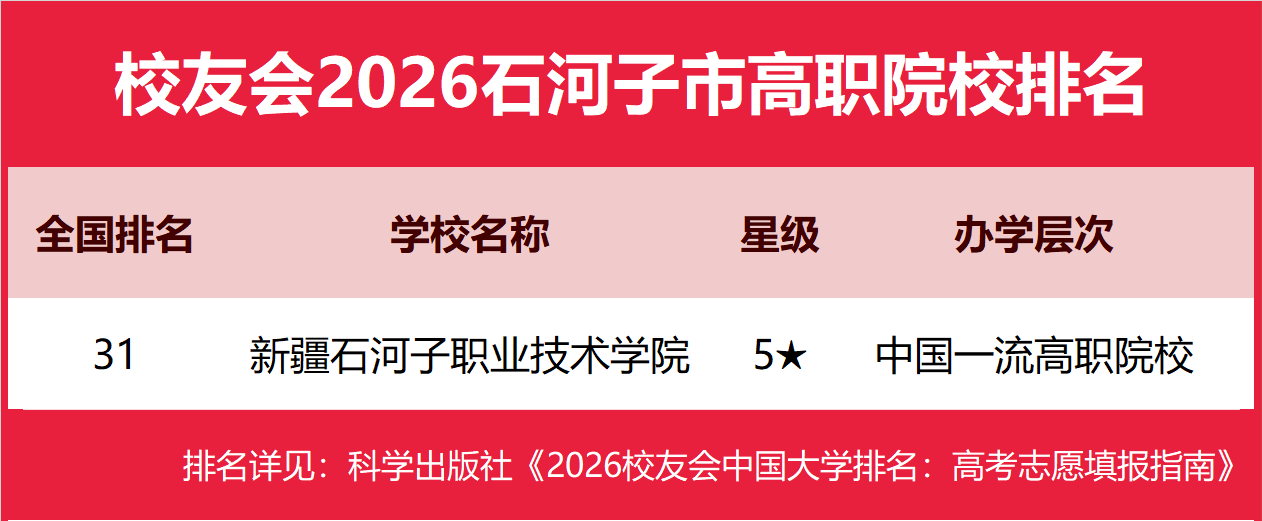 | 校友会2026石河子市大学排名,新疆石河子职业技术学院第一 | |||