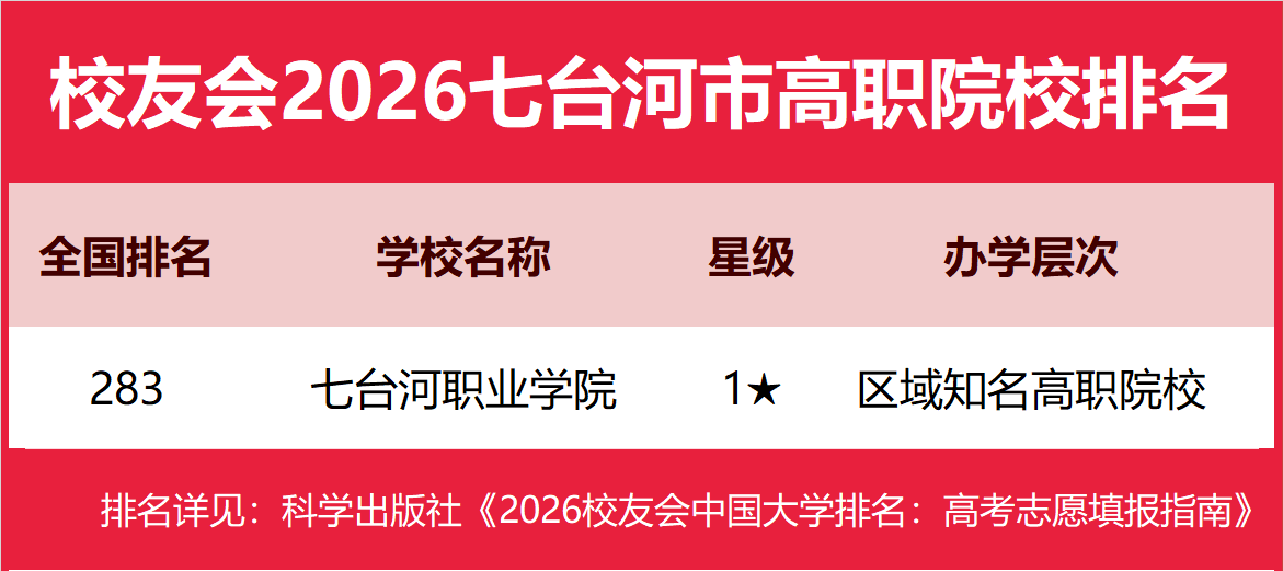 | 校友会2026七台河市大学排名,七台河职业学院第一 | |||