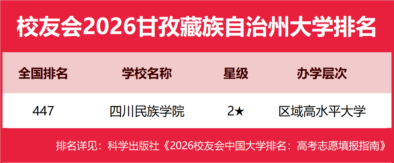校友会2026甘孜藏族自治州大学排名,四川民族学院第一