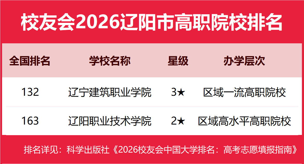 | 校友会2026辽阳市大学排名,辽宁建筑职业学院第一 | |||